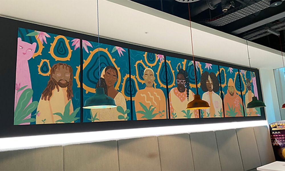 Last year, we asked local artist Tinuke Fagborun to create an amazing mural for our London office inspired by what it means to be ‘Proud to be Black’. The design focuses on ‘accepting Blackness, and ‘all that it entails’, and includes different shades, sizes, and skin textures. We’re proud to still be showcasing this mural in our kitchen area, make sure to check it out on your next visit!