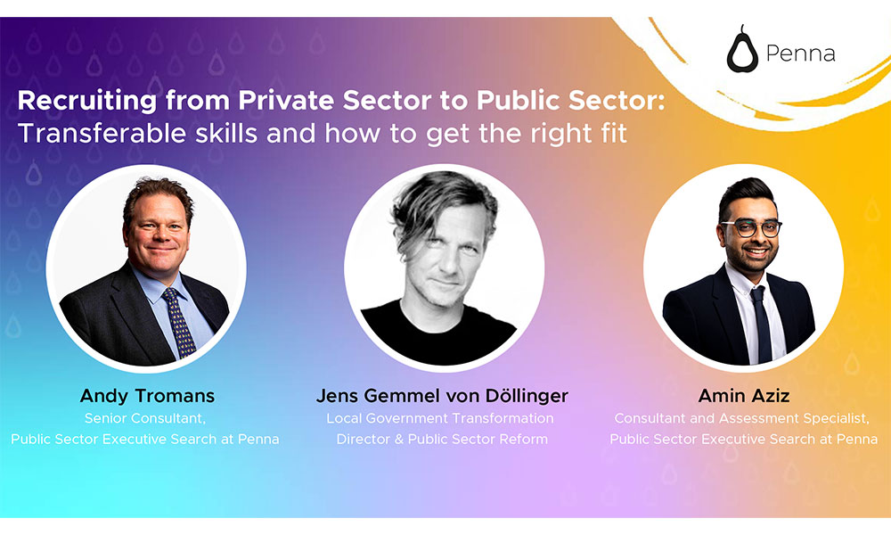 Many thanks to Andy Tromans, Senior Consultant, Public Sector Executive Search at Penna, who was joined by Jens Gemmel Von Döllinger, Local Government Transformation Director & Public Sector Reform, and Penna’s own Amin Aziz, Consultant and Assessment Specialist, Public Sector Executive Search.