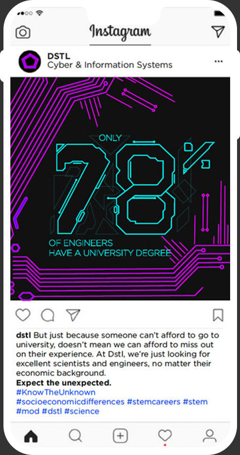 Dstl hire the brightest minds in the country, but their better-known competitors were taking the best talent. We needed to fill 50 roles in their Cyber and Information Systems division (CIS), so we took inspiration from Dstl’s employer brand and did something unexpected.