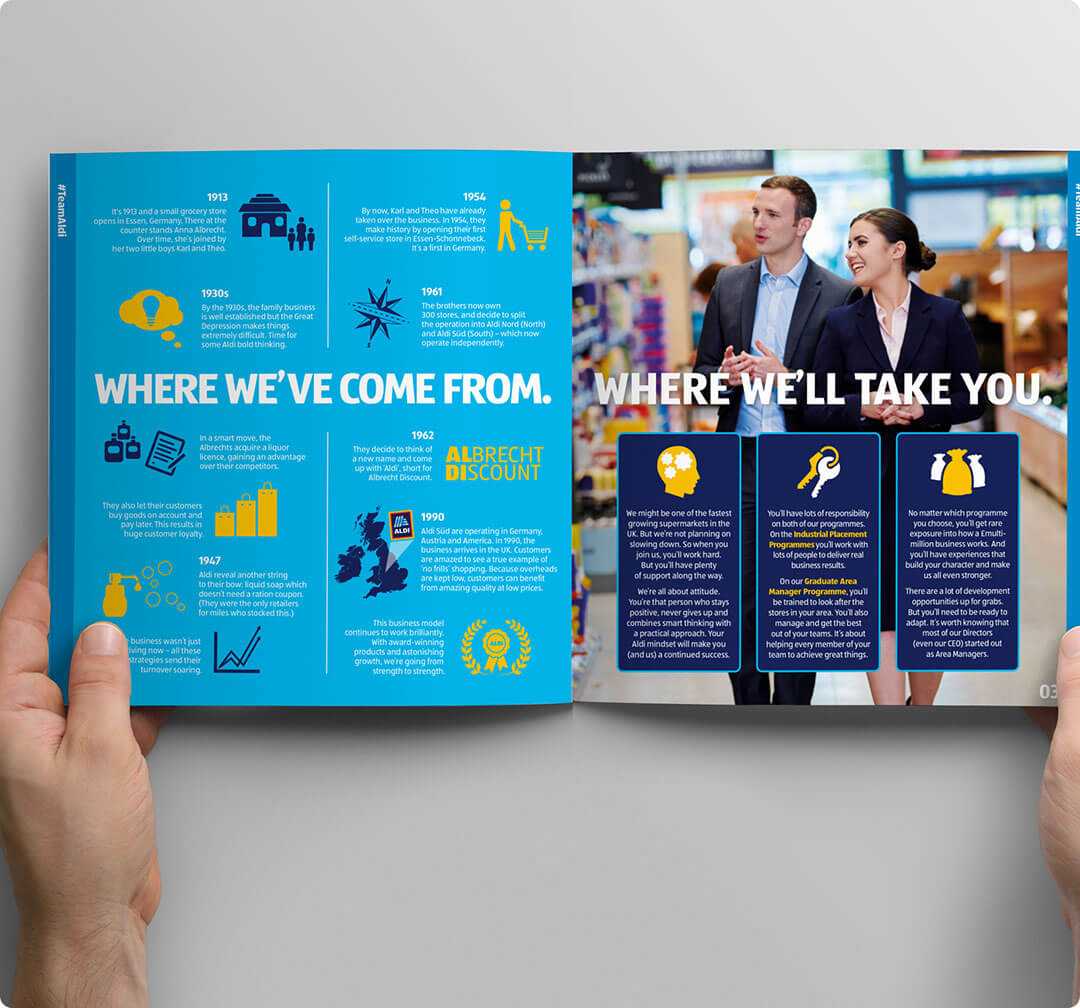It’s early days as the new EVP was rolled out at the beginning of 2021. Since the launch, we’ve not lost steam. We’ve updated the recruitment website, created a library of new assets and run brand workshops. And we’re now beginning to develop specific graduate campaigns. So it won’t be long before we start seeing how ‘Aldi Means More’ has given us more than just great results.